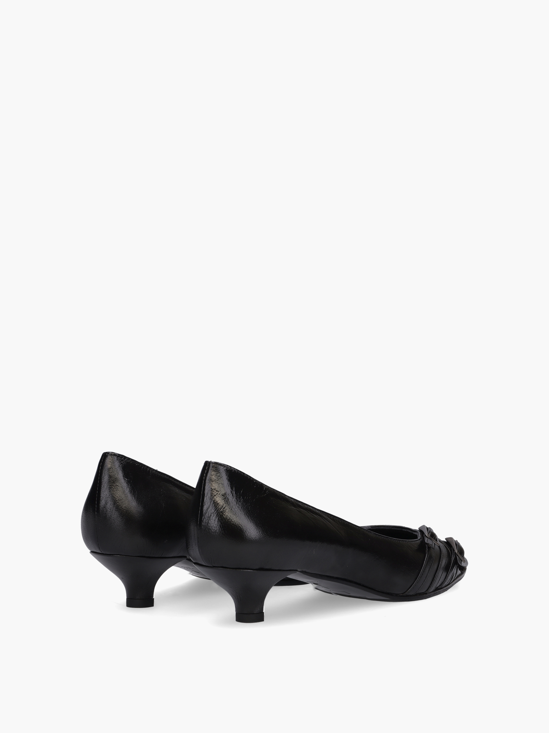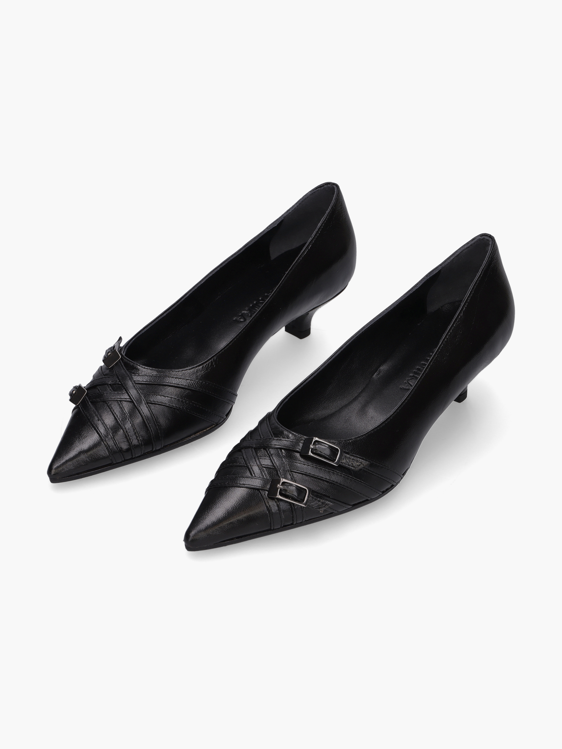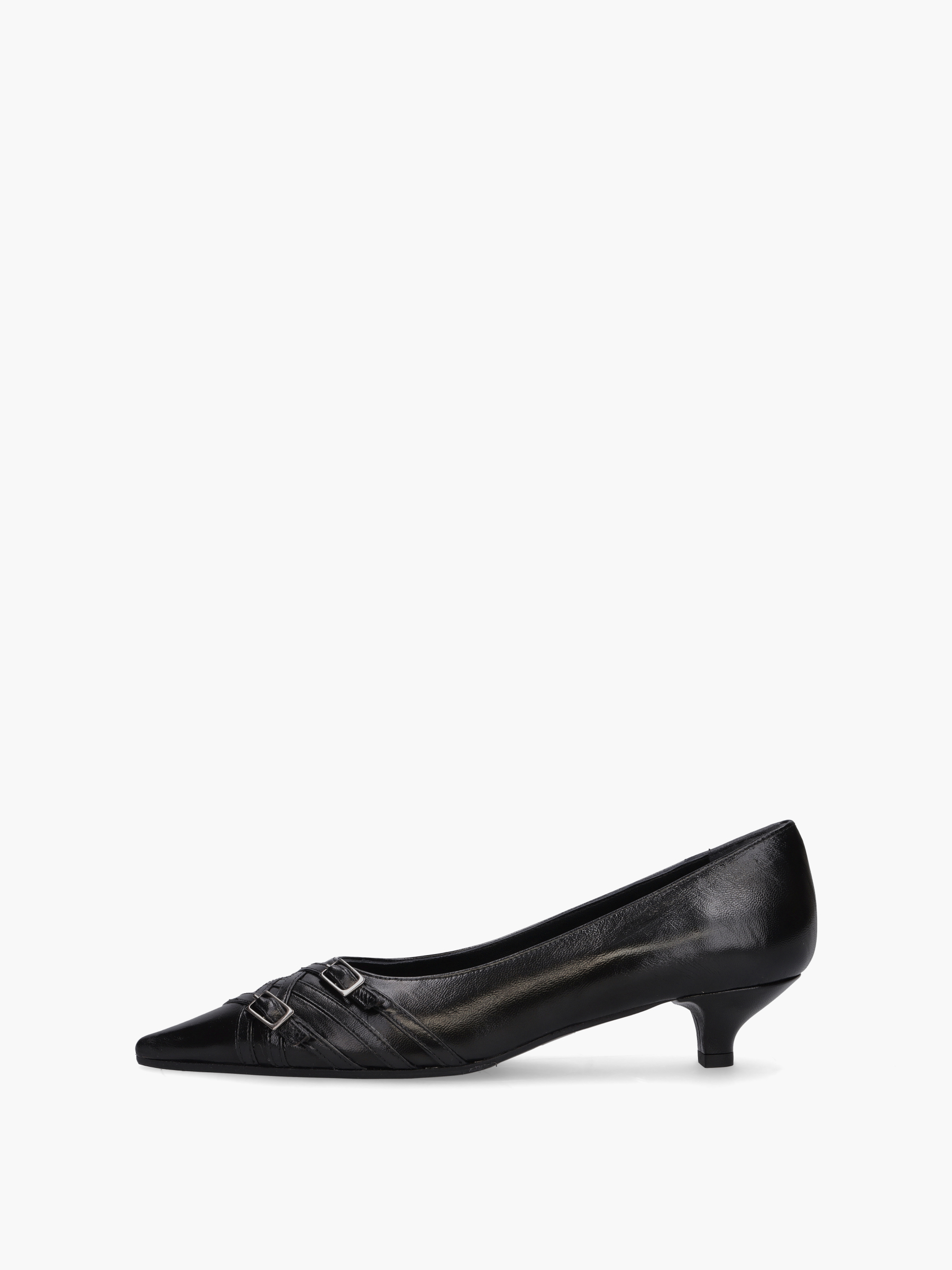 These pumps made from elegant smooth leather impress with their slim silhouette, pointed cut and two striking decorative buckles. The low heel height provides comfort without sacrificing style - perfect for long days with a fashionable effect. VAIDA skilfully plays with classic femininity and modern strength. Handmade in Italy, for women who love details and show attitude.