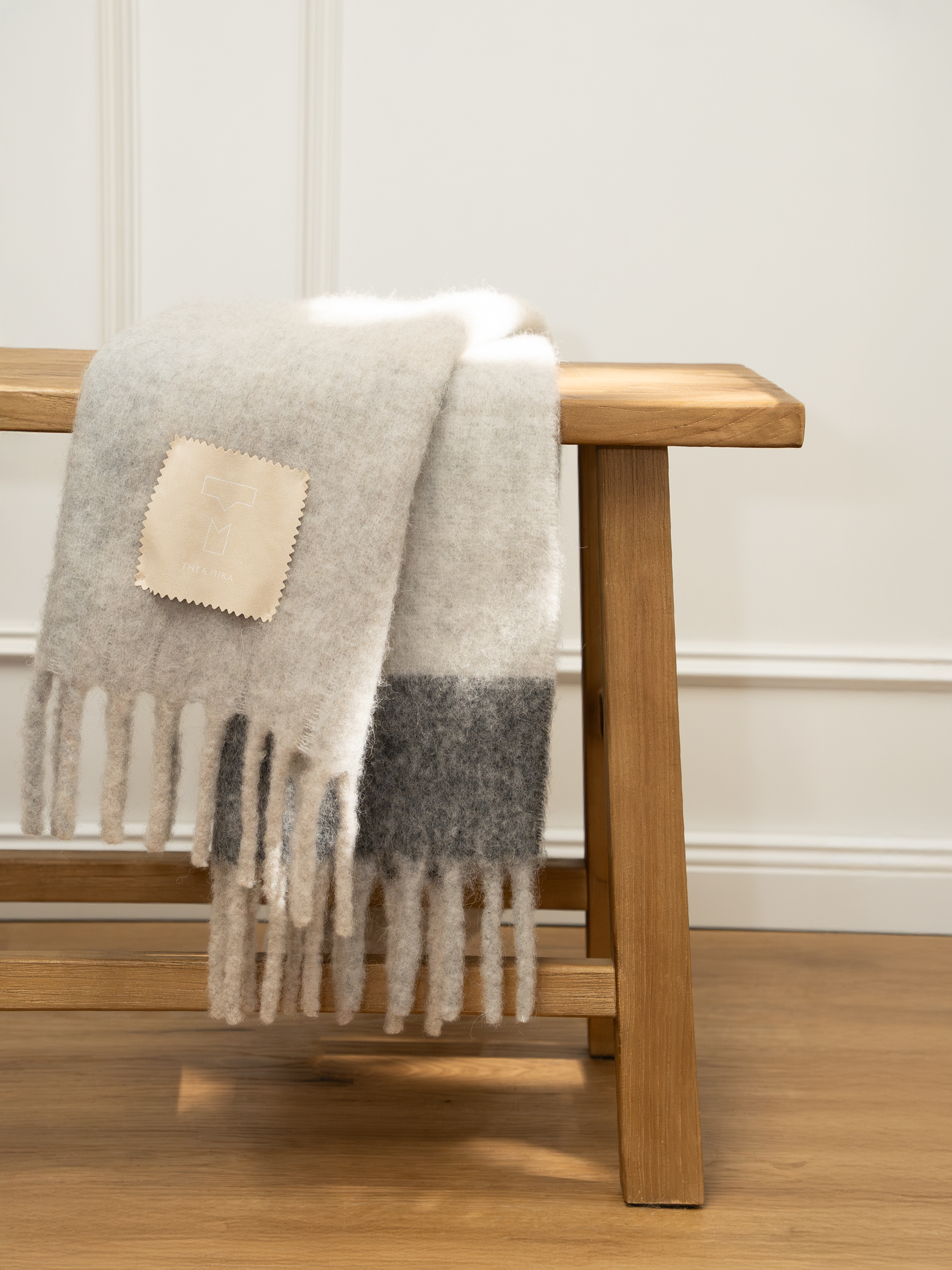 This soft scarf in a luxurious alpaca blend combines warmth with timeless elegance. Featuring natural tones and a distinctive fringed design, it’s a versatile accessory that elevates any outfit with ease. Lightweight, cozy, and refined – a true must-have for colder days.