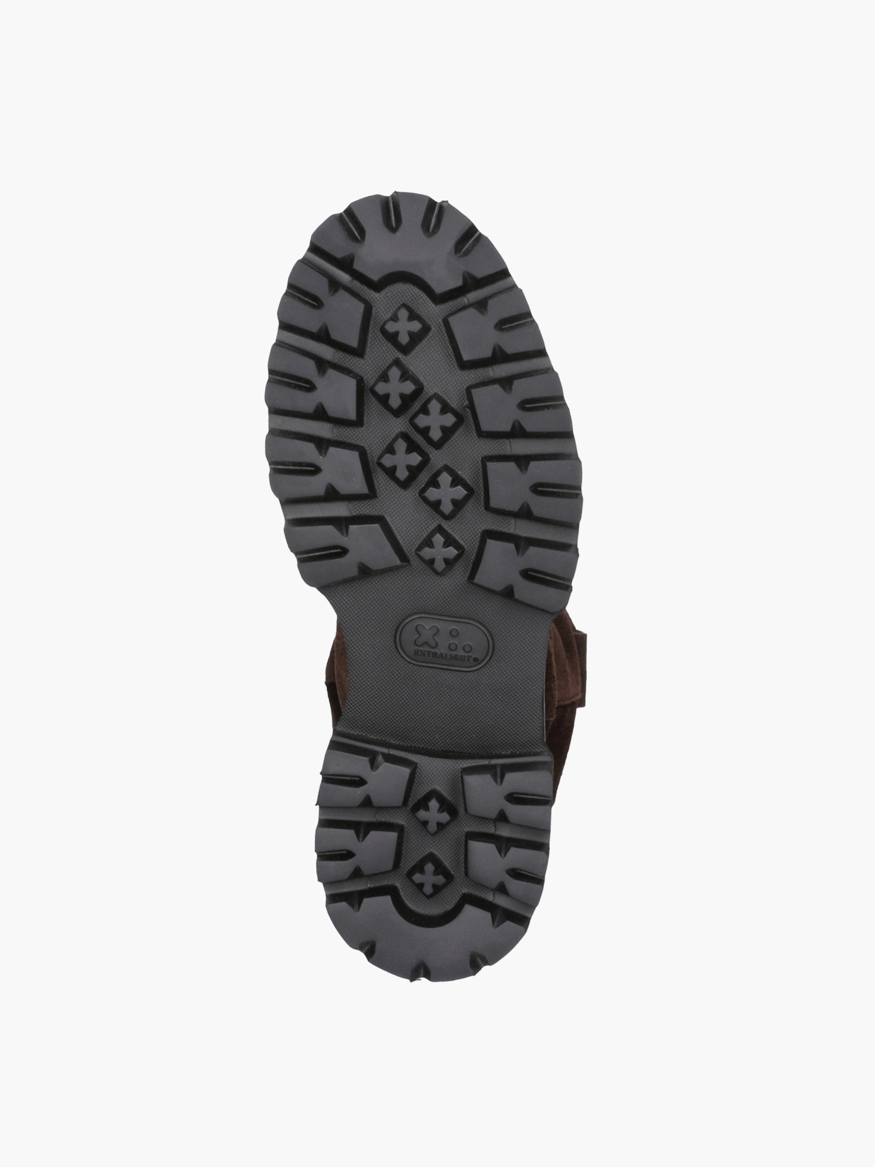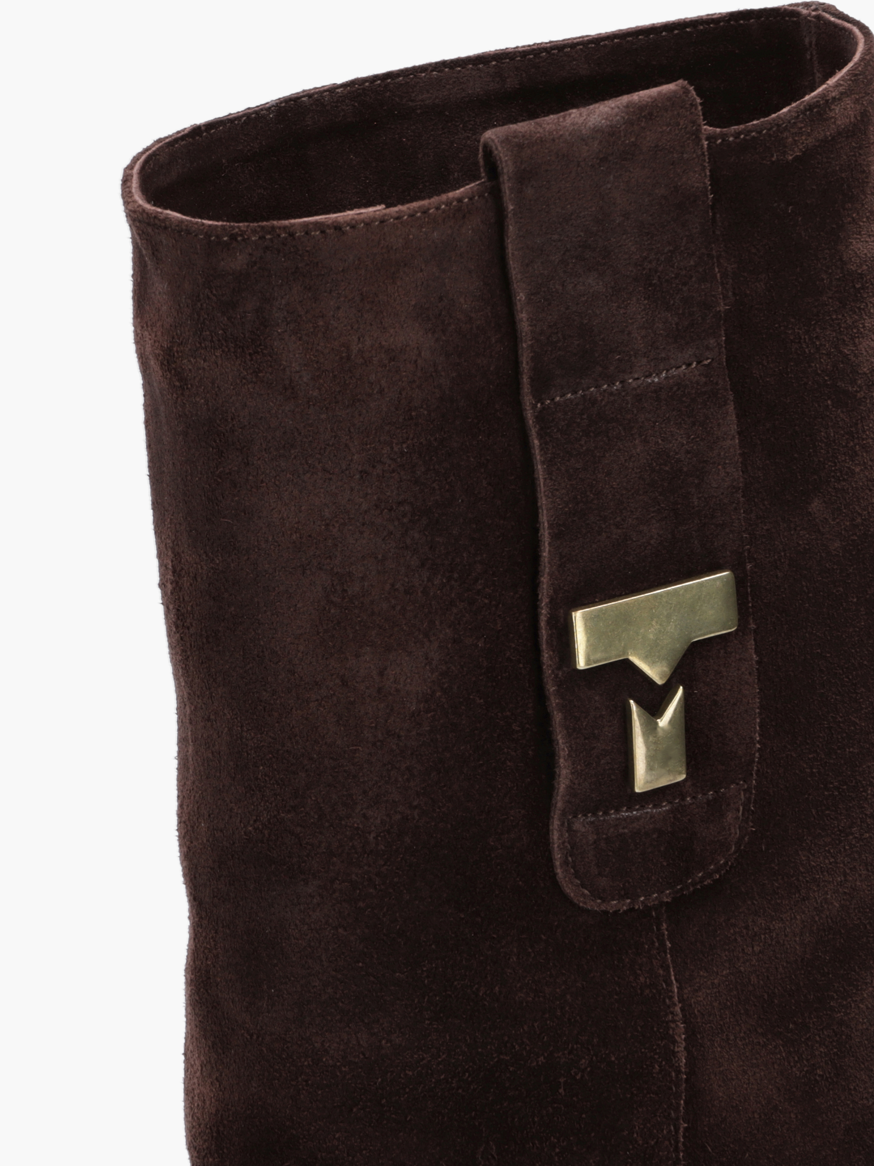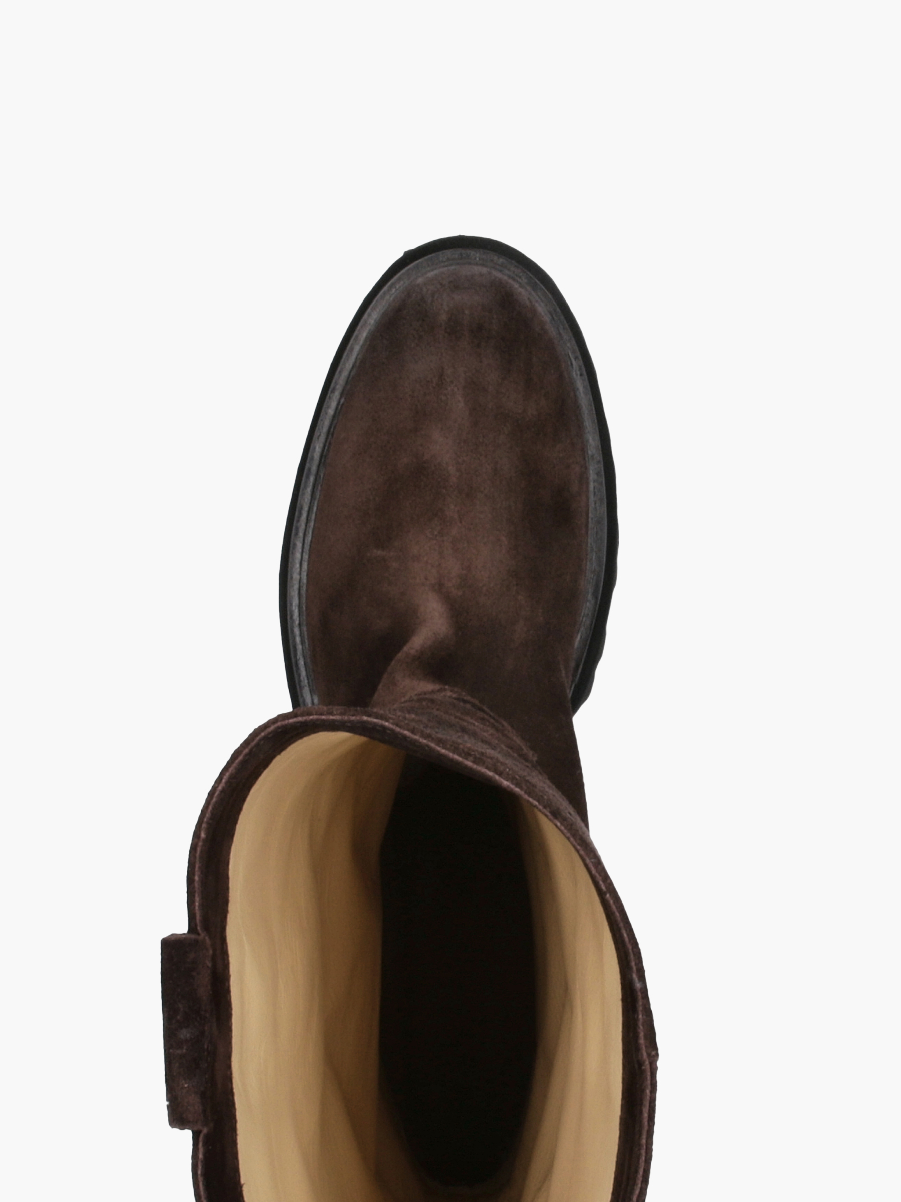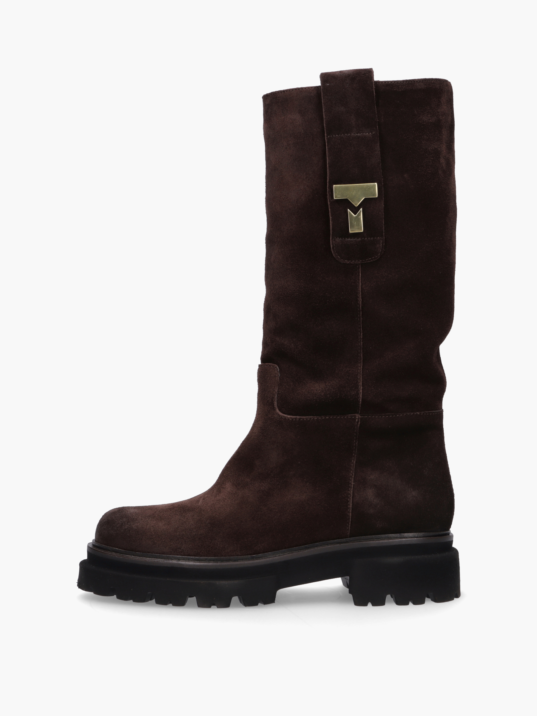 The CELIA boots combine a robust design with a touch of extravagance. Made from high-quality suede and featuring an eye-catching metal logo appliqué, they make a striking statement. The chunky treaded sole ensures stability and gives the look a strong presence.