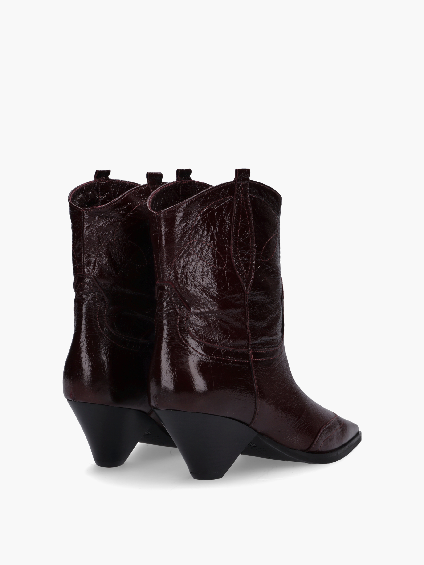 Die VAL Cowboy-Boots überzeugen durch ihr markantes Western-Design und hochwertiges Glattleder in einem satten, tiefen Ton. Die spitz zulaufende Front und der schräg geschnittene Absatz verleihen dem Modell eine ausdrucksstarke Silhouette mit urbanem Flair. Dekorative Nähte und typische Western-Details machen diesen Boot zu einem echten Statement-Piece.